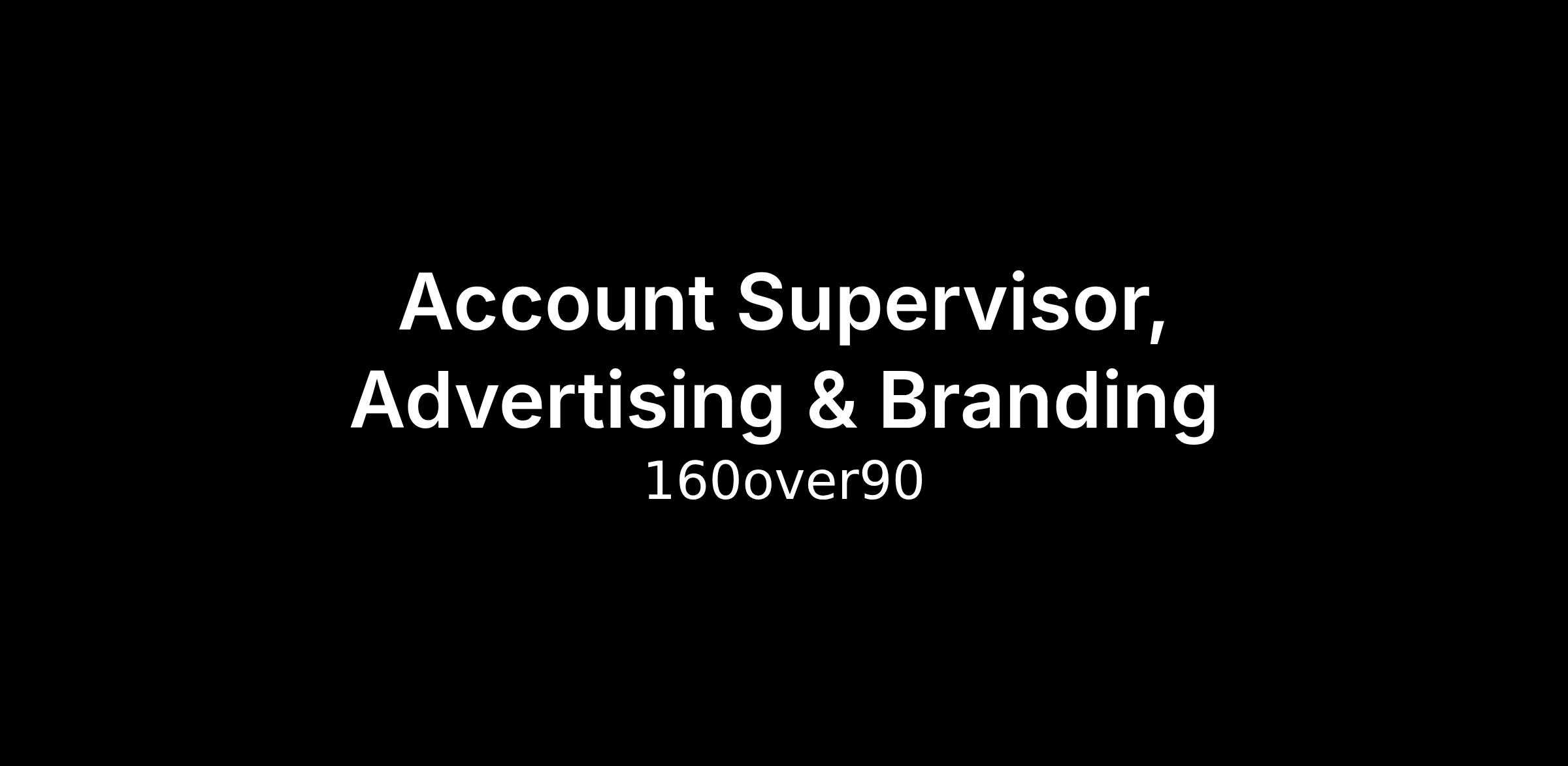 160over90 is a global marketing agency that represents brands by connecting them to the places, people and moments that matter most. We’re seeking experienced, account management professionals looking to lead projects and accounts. You partner with Account leadership on books of business and teams. You work closely with clients to steward their advertising and branding challenges and help them achieve their business goals. You are learning the difference between executing marketing campaigns and building brands and want to work at a place that excels at both. You have started to develop the nuances of expert client service, and you’re getting comfortable swimming in any lane—digital, video, strategy, identity, anything.