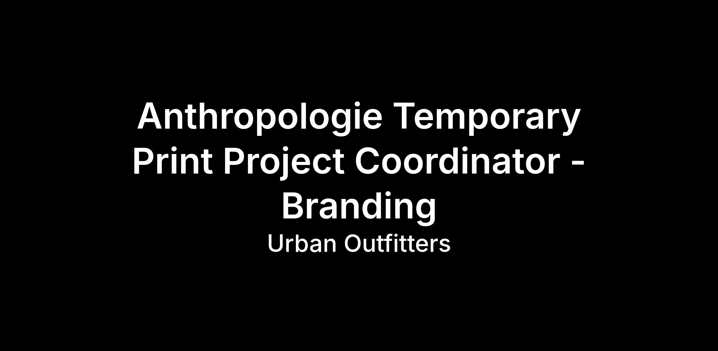 Anthropologie is seeking a Temporary Print Project Coordinator - Branding. The Print Project Coordinator will report into the Art Department Project Manager and will be responsible for supporting the asset creation of print collateral for Anthropologie Group garment labels, packaging, and branded collateral. This is an operational role that will support day-to-day operational needs to ensure efficient workflow and effective processes of the creative print team.