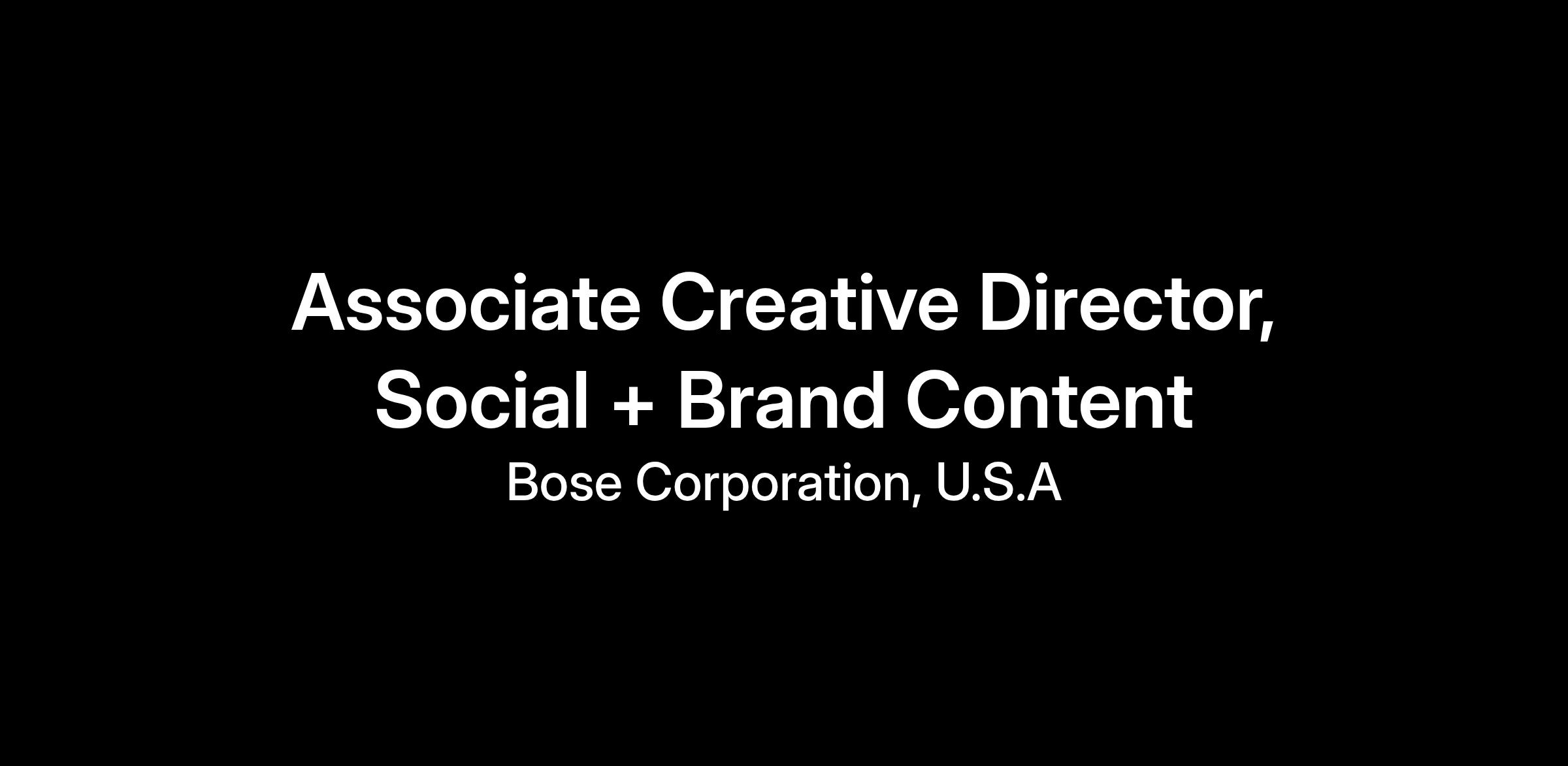 We’re looking for an Associate Creative Director (ACD), Social + Brand Content to lead the creative vision for how the brand shows up across social and digital channels. This is a pivotal role within the Bose Content Studio, guiding concept development, design direction, and storytelling across paid and organic social campaigns that feature our brand ambassadors.