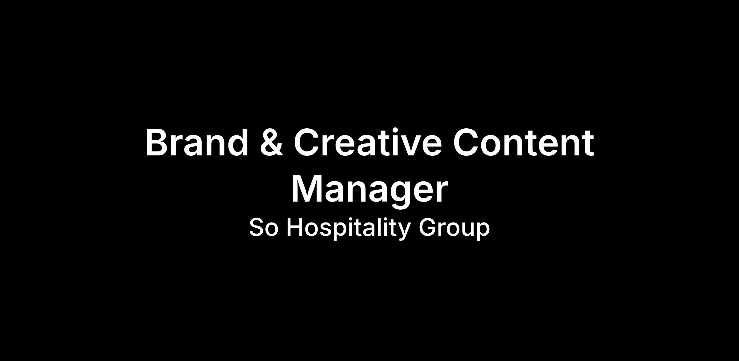 So Hospitality Group is looking for a creative, trend-aware, energetic person to lead the visual marketing, content, and brand presence for: