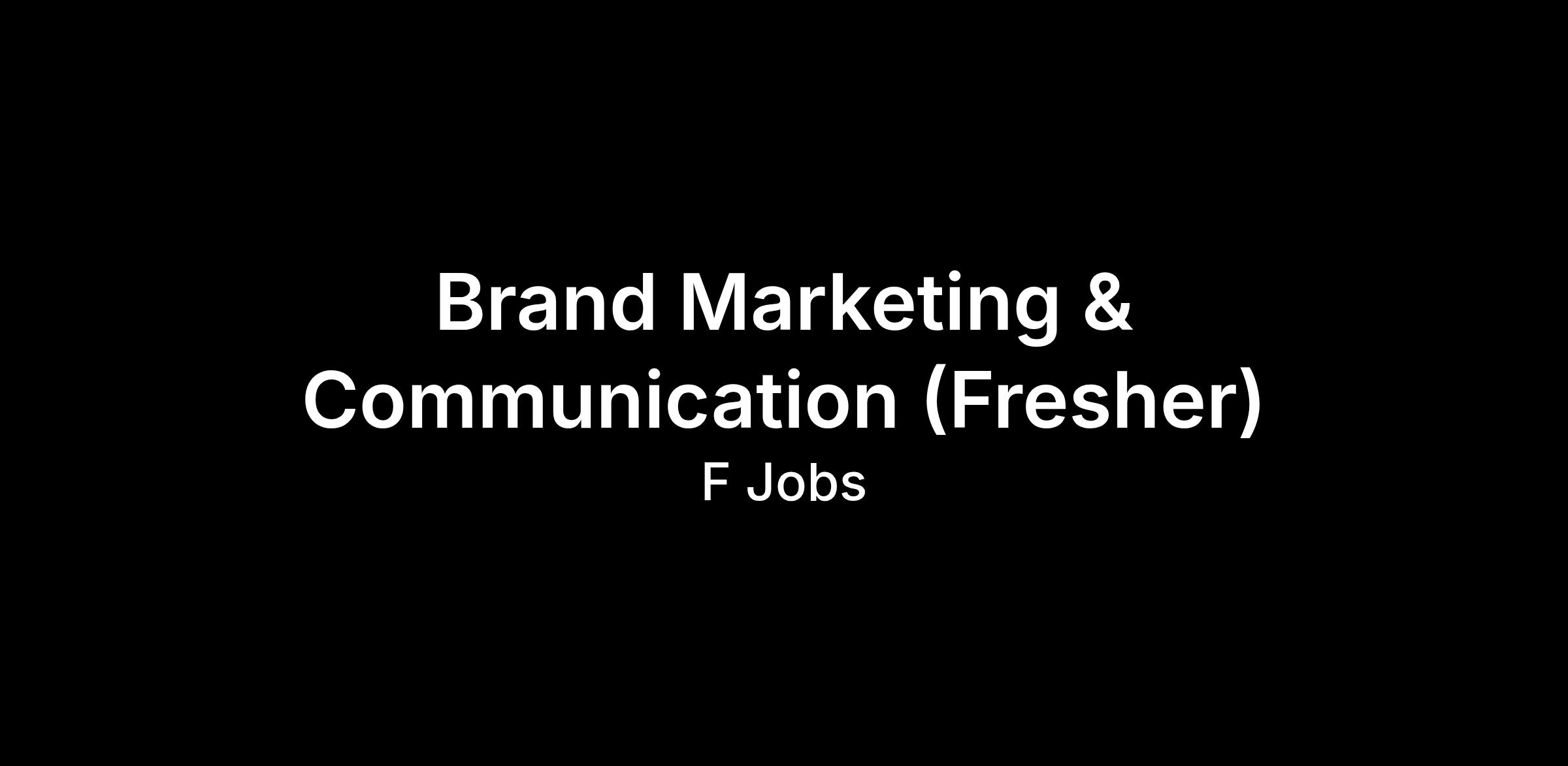Job Title: Brand Communication & Marketing Executive (Fresher)