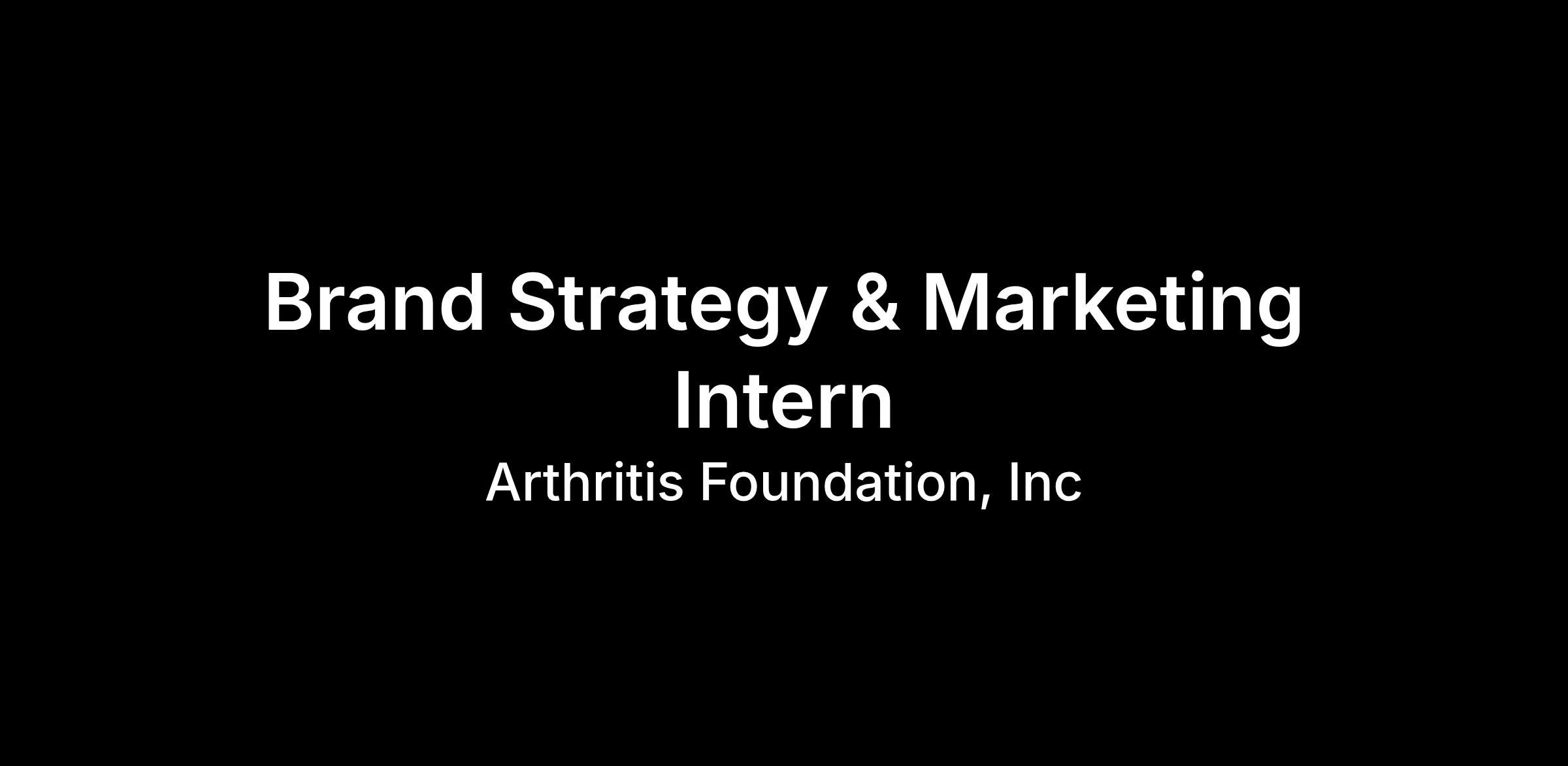 The Brand Strategy & Marketing Intern supports the Arthritis Foundation’s brand development and strategic marketing initiatives across a variety of channels and programs. They will work closely with Marketing & Communications colleagues to strengthen the Arthritis Foundation’s brand presence as we boldly pursue a cure for America's #1 cause of disability and champion the fight to conquer arthritis with life-changing science, resources, advocacy and community connections. The Brand Strategy & Marketing Intern will bring curiosity, strategic thinking, creativity, and a desire to learn to this role. We’re looking for passionate, analytical, proactive individuals who enjoy problem-solving, understanding audiences, and shaping clear brand stories. Openness to collaboration and constructive feedback is essential. |