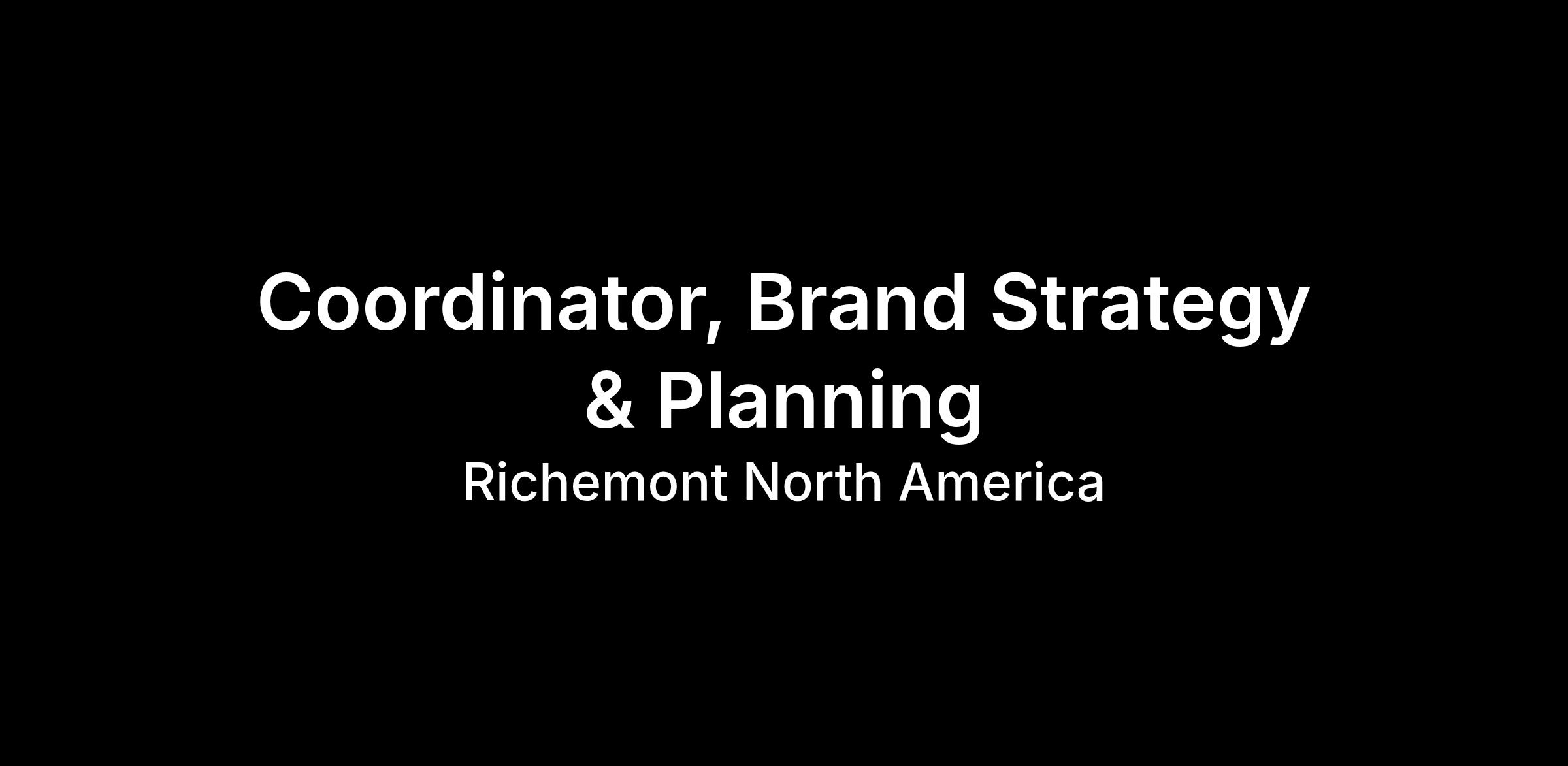 The Coordinator, Brand Strategy & Planning is responsible for supporting the Brand Strategy and Planning team through the development of strategic initiatives and projects to achieve the business and branding goals of Cartier North America. This role will support day-to-day project management responsibilities for key projects, working closely with cross-functional teams.
