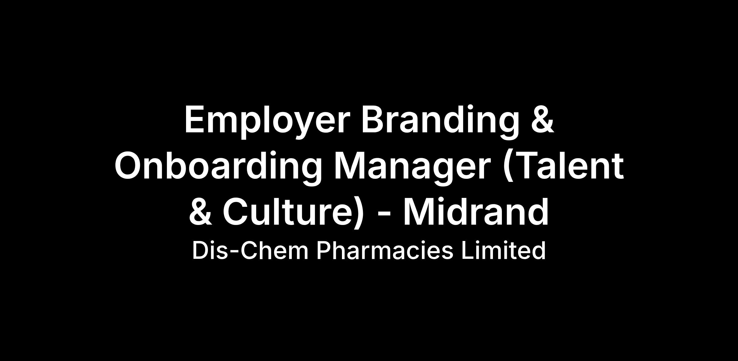 Dis-Chem Pharmacies are looking for an experienced Employer Branding & Onboarding Manager who has two main accountabilities: