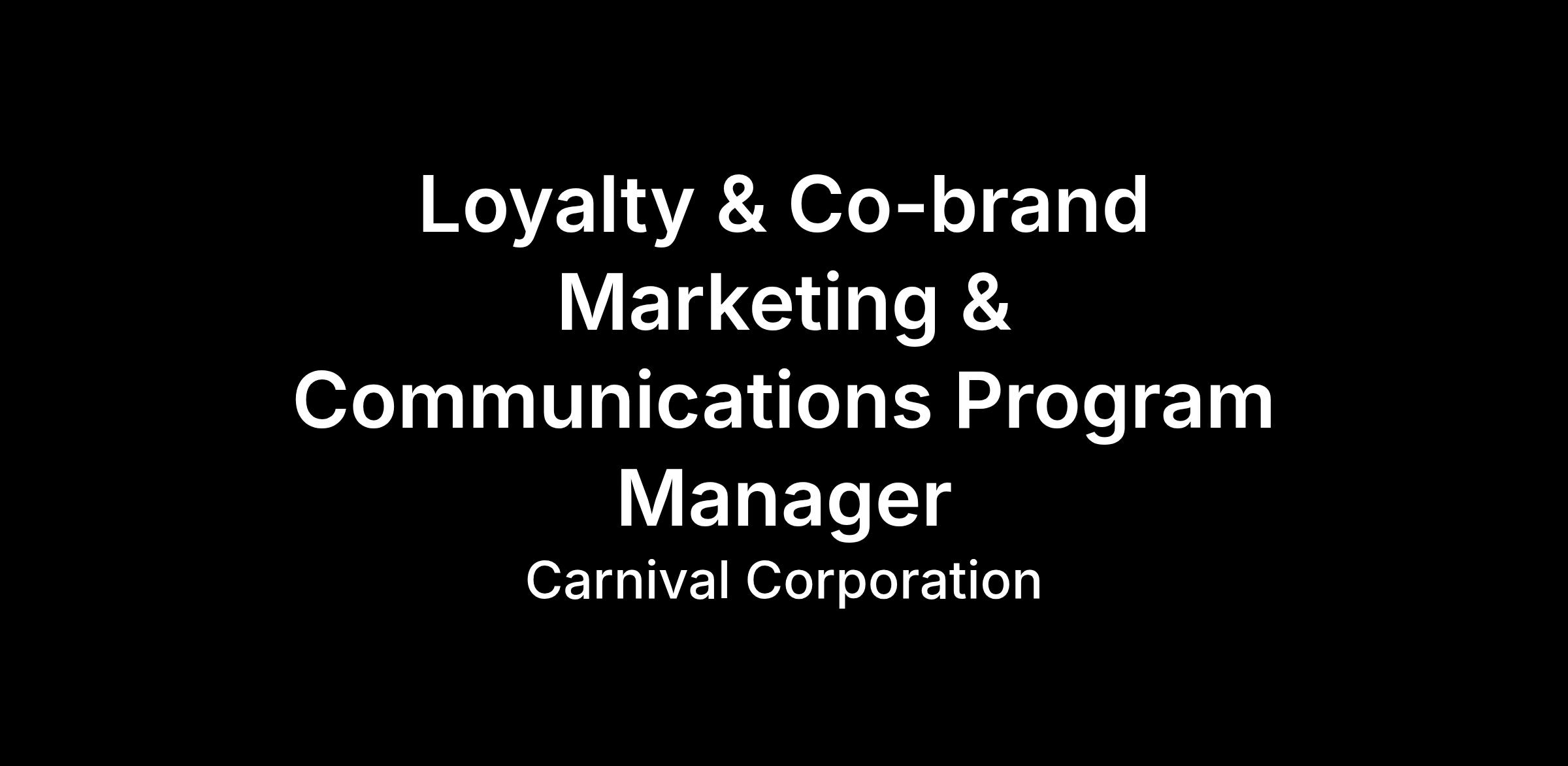 Impact: The Program Manager directly contributes to the success of Carnival’s loyalty and co‑brand programs by: Driving consistent, on‑brand, and compliant marketing execution that increases customer engagement, loyalty, and program awareness. Maximizing the effectiveness and ROI of multi‑million‑dollar marketing investments through disciplined budget management and performance optimization. Reducing risk and protecting brand integrity by ensuring all communications meet regulatory, legal, and internal governance standards.