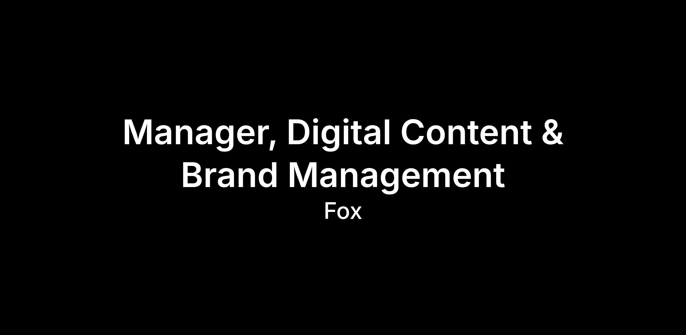 Fox Corporation Under the FOX banner, we produce and distribute content through some of the world’s leading and most valued brands, including: FOX News Media, FOX Sports, FOX Entertainment, FOX Television Stations and Tubi Media Group. We empower a diverse range of creators to imagine and develop culturally significant content, while building an organization that thrives on creative ideas, operational expertise and strategic thinking.The FOX Portfolio Ad Sales Marketing team is searching for a strategic and highly organized Manager of Digital Content & Brand Management to champion the FOX Advertising brand in the marketplace.