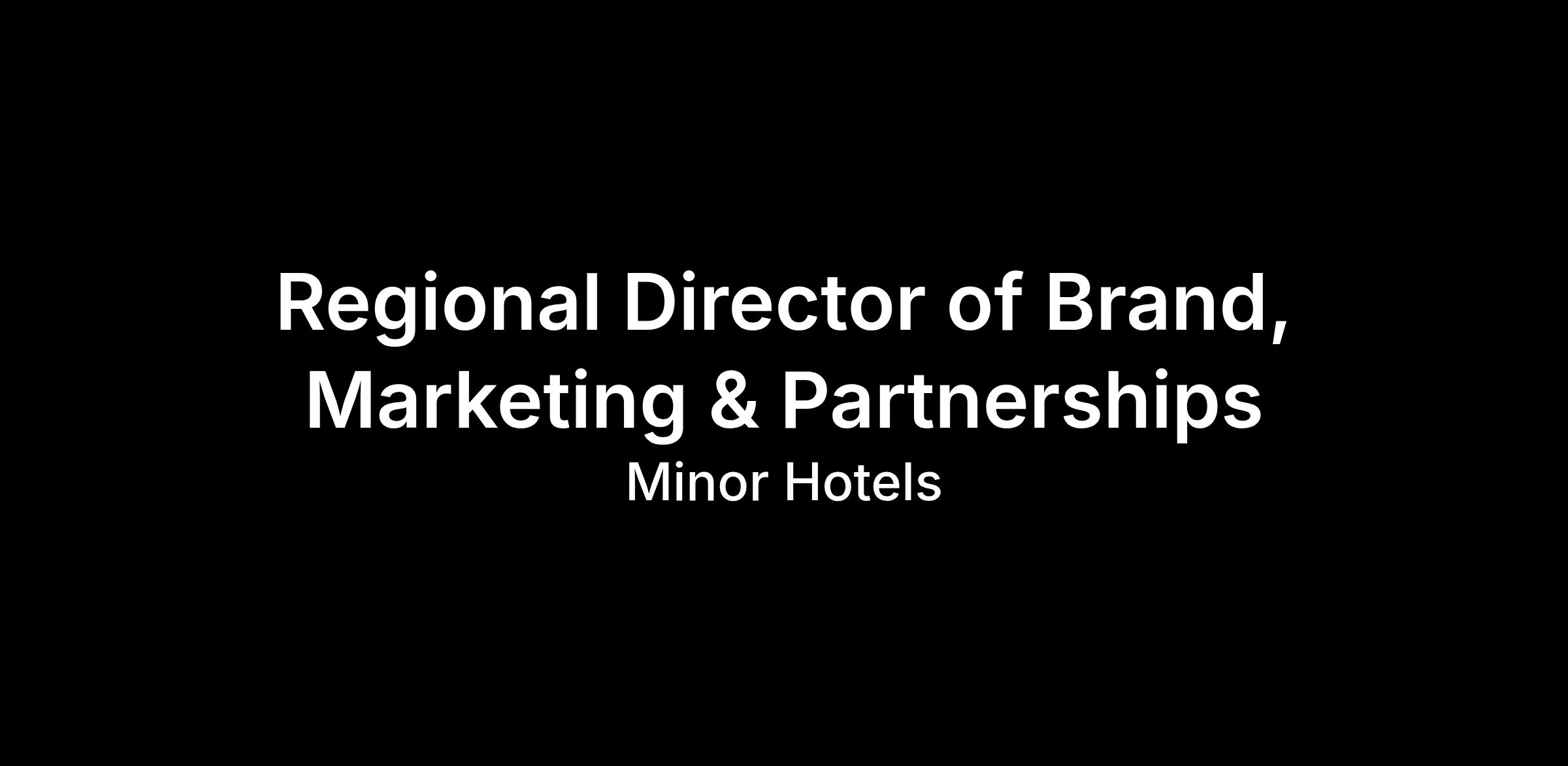 Purpose of the Role: To define, lead, and deliver strategic brand marketing, communications, and partnerships initiatives across the Middle East & Africa, strengthening the positioning and equity of Minor Hotels and its brands. The role will support the company’s regional development ambitions by translating business and growth objectives into impactful marketing strategies, programmes, and partnerships that enhance brand visibility, support expansion, and drive long-term commercial value. Working closely with regional leadership, global brand teams, and external partners, the role will play a key part in advancing Minor Hotels’ presence and performance across the region.