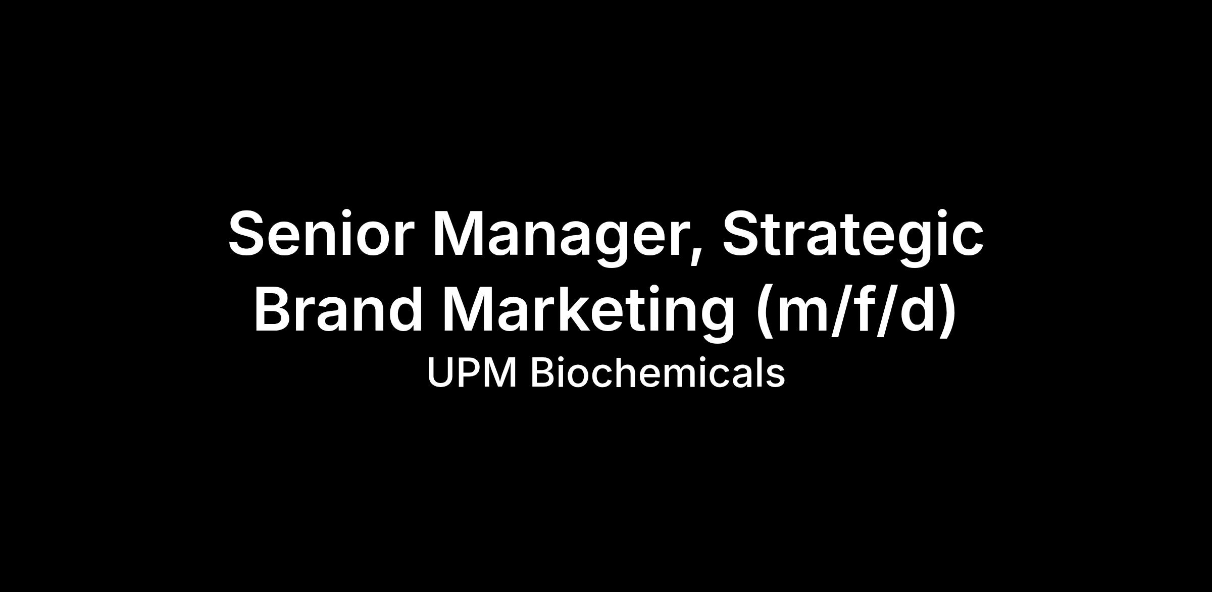 We are now looking for a Senior Manager, Strategic Brand Marketing (m/f/d) to join our team. This position can be located in any of our UPM locations in Europe.