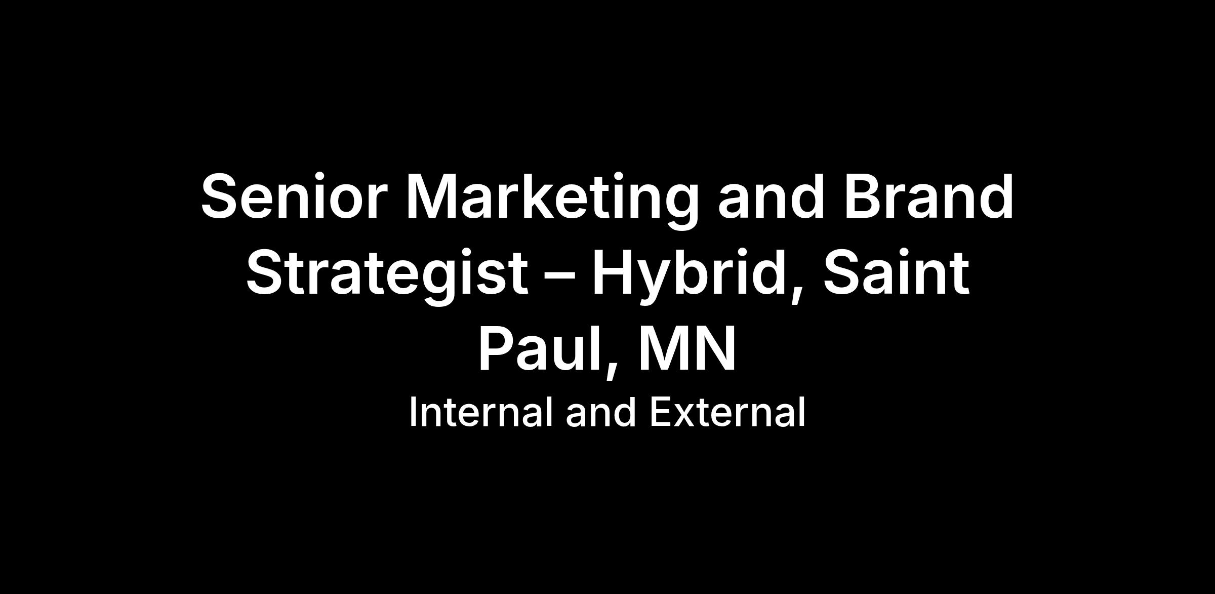 Senior Marketing and Brand Strategist – Hybrid, Saint Paul, MN